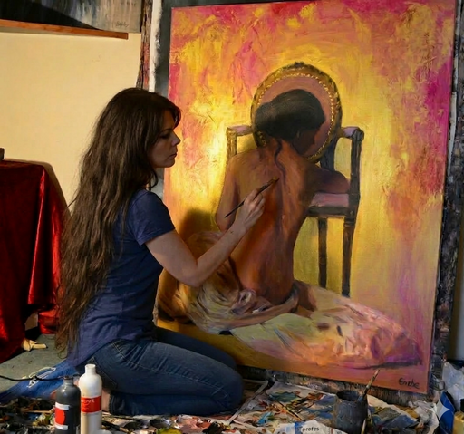 After leaving school Escha studied art in Florence, Italy, Salzburg, Austria and her home country Holland. Inspiration comes from many different things, the old masters Caravaggio, Rembrandt, Da Vinci etc. who created a beautiful sense of light. Movies set in olden times and places like Venice, Florence, and the Middle East. But inspiration can also come from people, experiences good or bad and simply just life itself can create new emotions on the canvas.